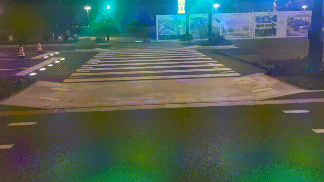 斑马线上安装了智慧发光灯,智慧发光灯和人行横道信号灯颜色同步。当人行横道信号灯为绿灯时,智慧发光灯会闪现绿光,靠近机动车道的部分则亮起白灯,提示机动车禁止通行。在夜间或大雾等环境下,智慧发光灯可以让行人和车辆更加直观地看到信号灯的变化,减少交通事故的发生。另外,智慧发光灯也可以提醒过马路的“低头族”,注意交通信号灯的变化。