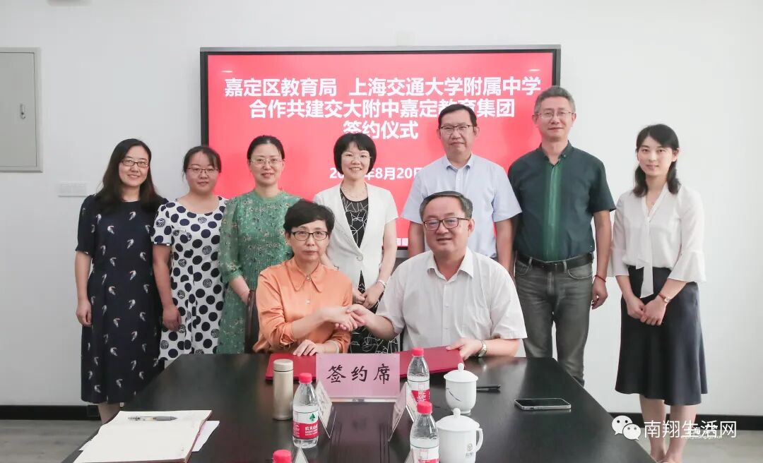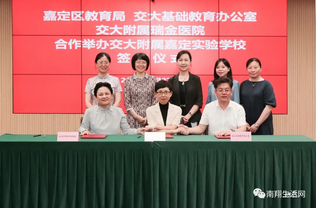 为进一步加快嘉定基础教育现代化建设,根据《嘉定区人民政府、上海交通大学、上海交通大学医学院附属瑞金医院合作办学的框架协议》,进一步做大做强嘉定新城的基础教育,近日,嘉定区教育局和上海交通大学基础教育办公室、上海交通大学医学院附属瑞金医院签订《关于合作举办上海交通大学附属嘉定实验学校的备忘录》,和上海交通大学附属中学签订《合作共建交大附中嘉定教育集团备忘录》。