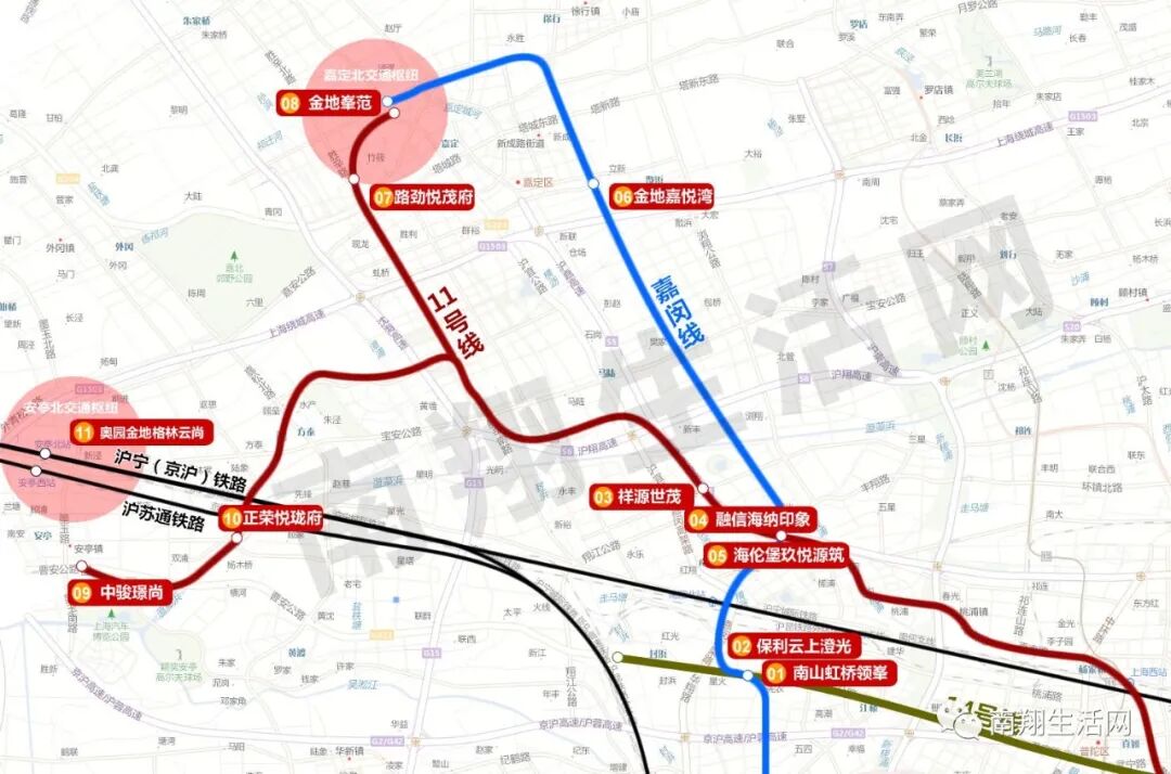 此前,南翔生活网特别绘制了嘉定今年即将新上市楼盘的区位示意图,其中的南山虹桥领峯,有14号线和嘉闵线双轨交加持!