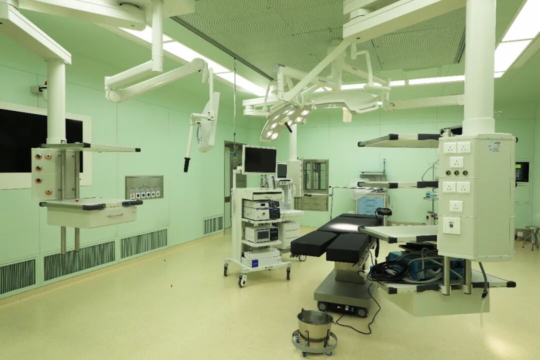 医院手术室里面配有3D、4K腹腔镜系统、轨道物流系统、耗材智能柜等高端医疗设备。其中,一体化手术室引进了国际一流设备,比如4k高清腹腔镜,可以识别微小病灶,实现尽早发现尽早治疗,同时减少手术损伤。