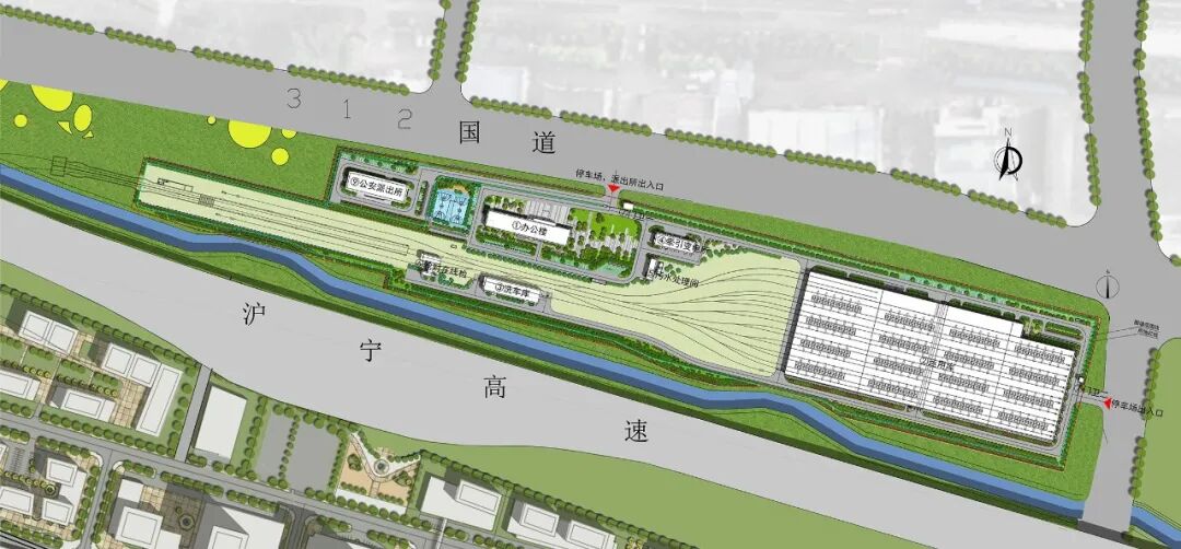 本项目位于昆山市花桥商务片区以北,北临花安路,南临沪宁高速,东至徐公桥路,西至沿沪大道,用地面积144885.26平方米,总建筑面积48997.64平方米,计容总建筑面积47825.5平米。项目主要规划担S1线部分车辆的停放、运用、整备、列检及双周三月检功能及停车场工作人员的办公场所。