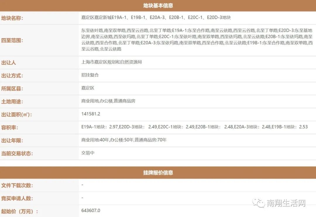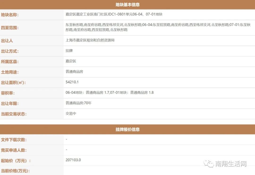 刚刚,南翔生活网从上海土地市场获悉:上海三批次土地集中出让信息发布!位于南翔、嘉定新城、菊园、南门的嘉定4块优质土地登场!