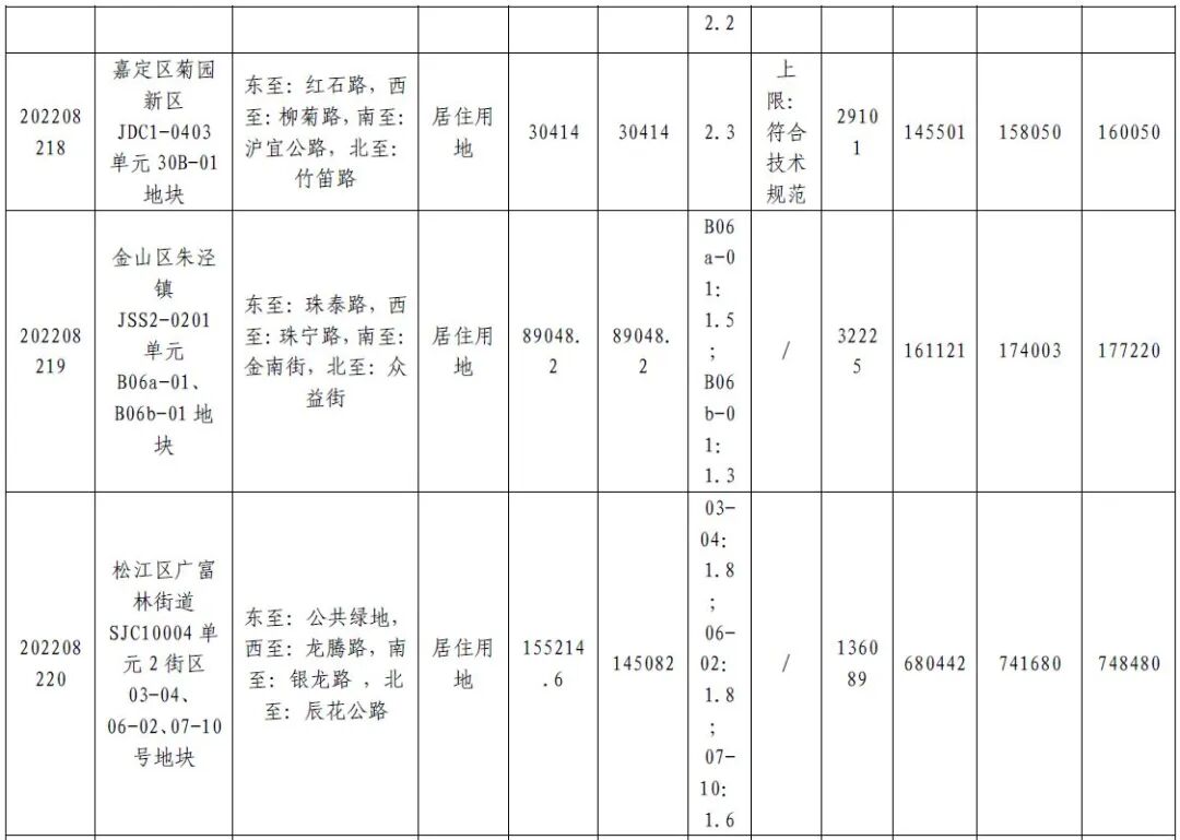 以下是本次上海三批次土拍的全部名单!