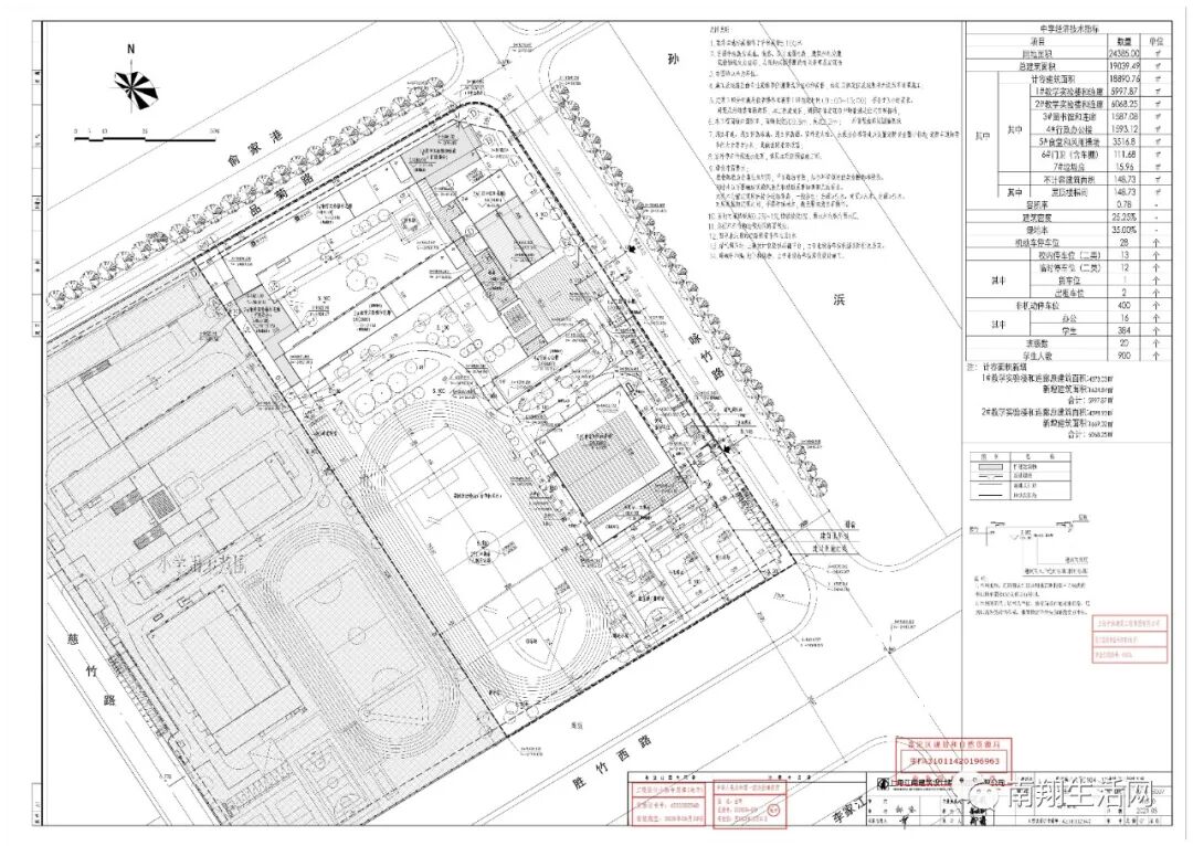 该学校项目由上海市嘉定区住宅发展中心建设,建设地址位于嘉定工业区,东至咏竹路,南至胜竹路,西至基地边界,北至品菊路。