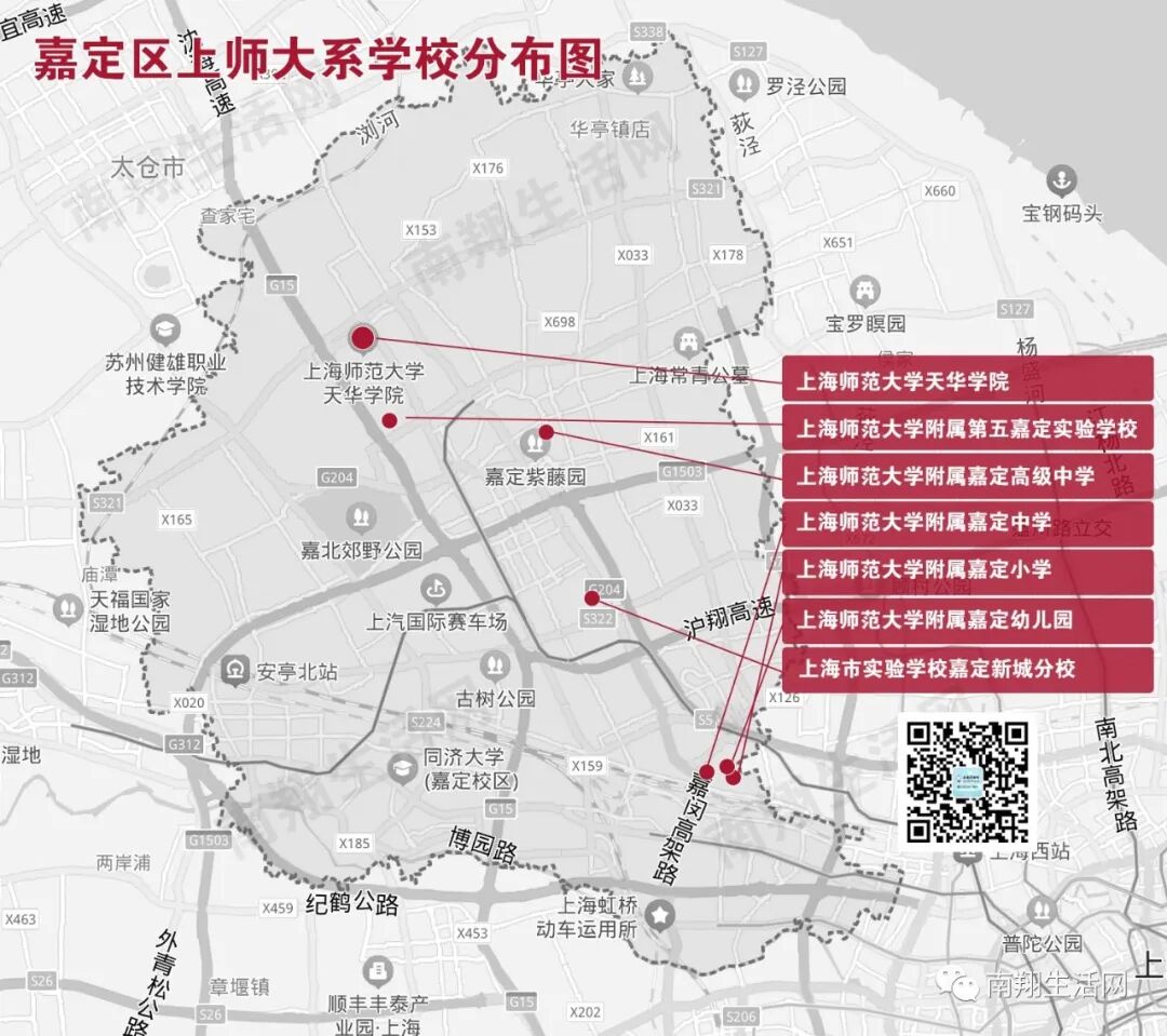根据南翔生活网整理,截止目前,已确定的嘉定“上师大系”学校从幼儿园到大学共有7所,分别是❶上海师范大学天华学院(嘉定工业区)、❷上海师范大学附属第五嘉定实验学校(嘉定工业区)、❸上海师范大学附属嘉定高级中学(嘉定镇)、❹上海师范大学附属嘉定中学(南翔,在建)、❺上海师范大学附属嘉定小学(南翔)、❻上海师范大学附属嘉定幼儿园(南翔,即将竣工)、❼上海市实验学校嘉定新城分校(嘉定新城,待建)。