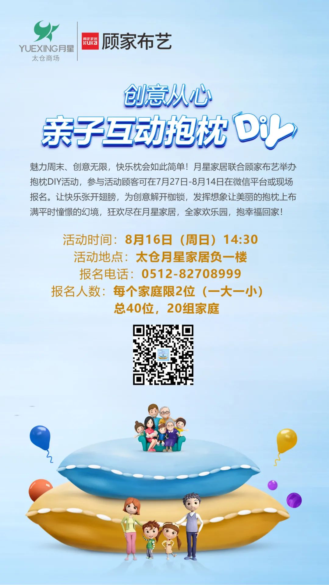 魅力周末、创意无限,快乐枕会如此简单!月星家居联合顾家布艺举办抱枕DIY活动。让快乐张开翅膀,为创意解开枷锁,发挥想象让美丽的抱枕上布满平时憧憬的幻境!