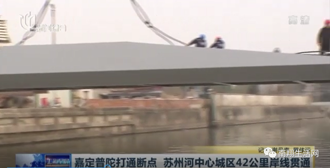 定于普陀与嘉定交界西浜的人行桥架设完成!