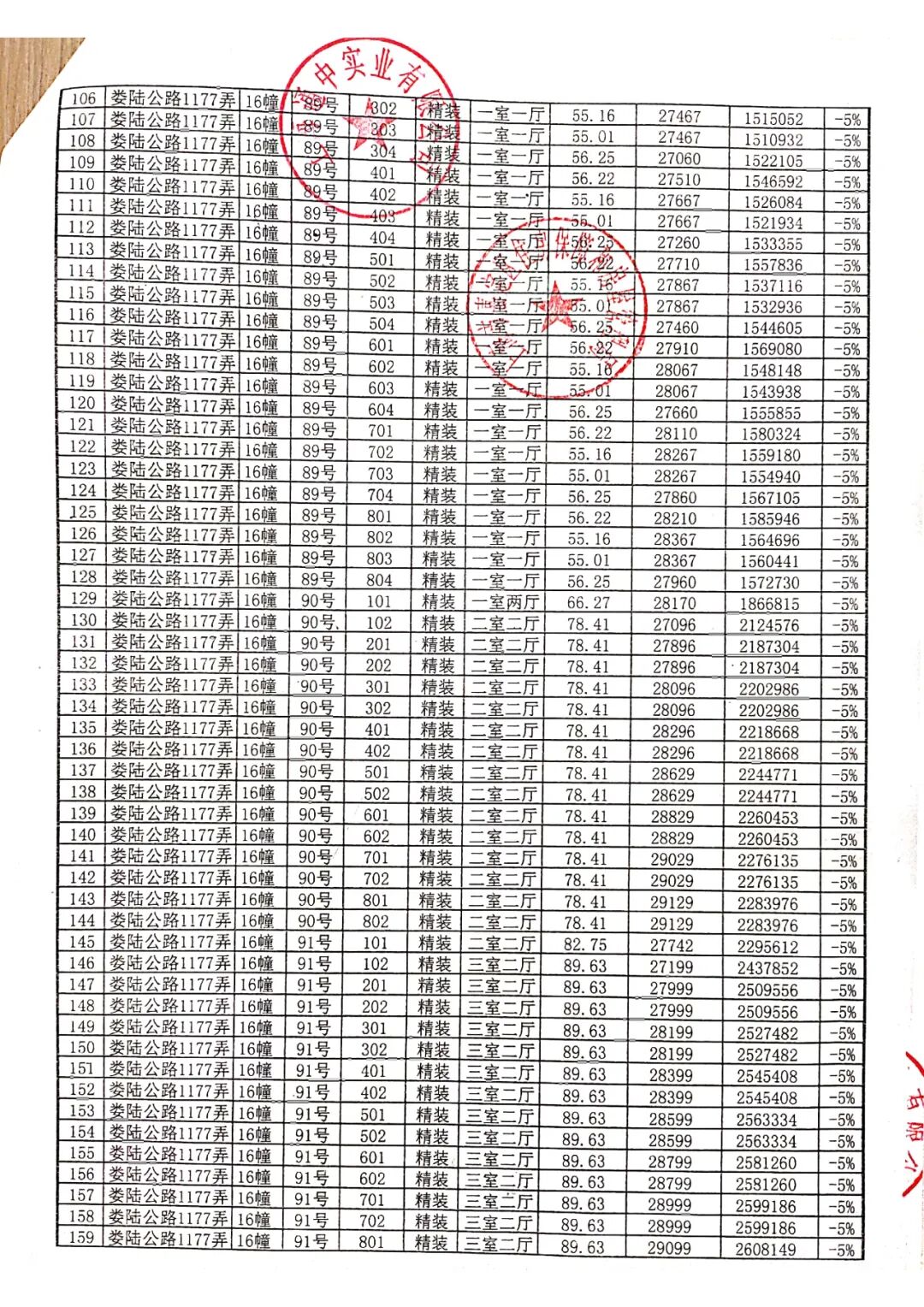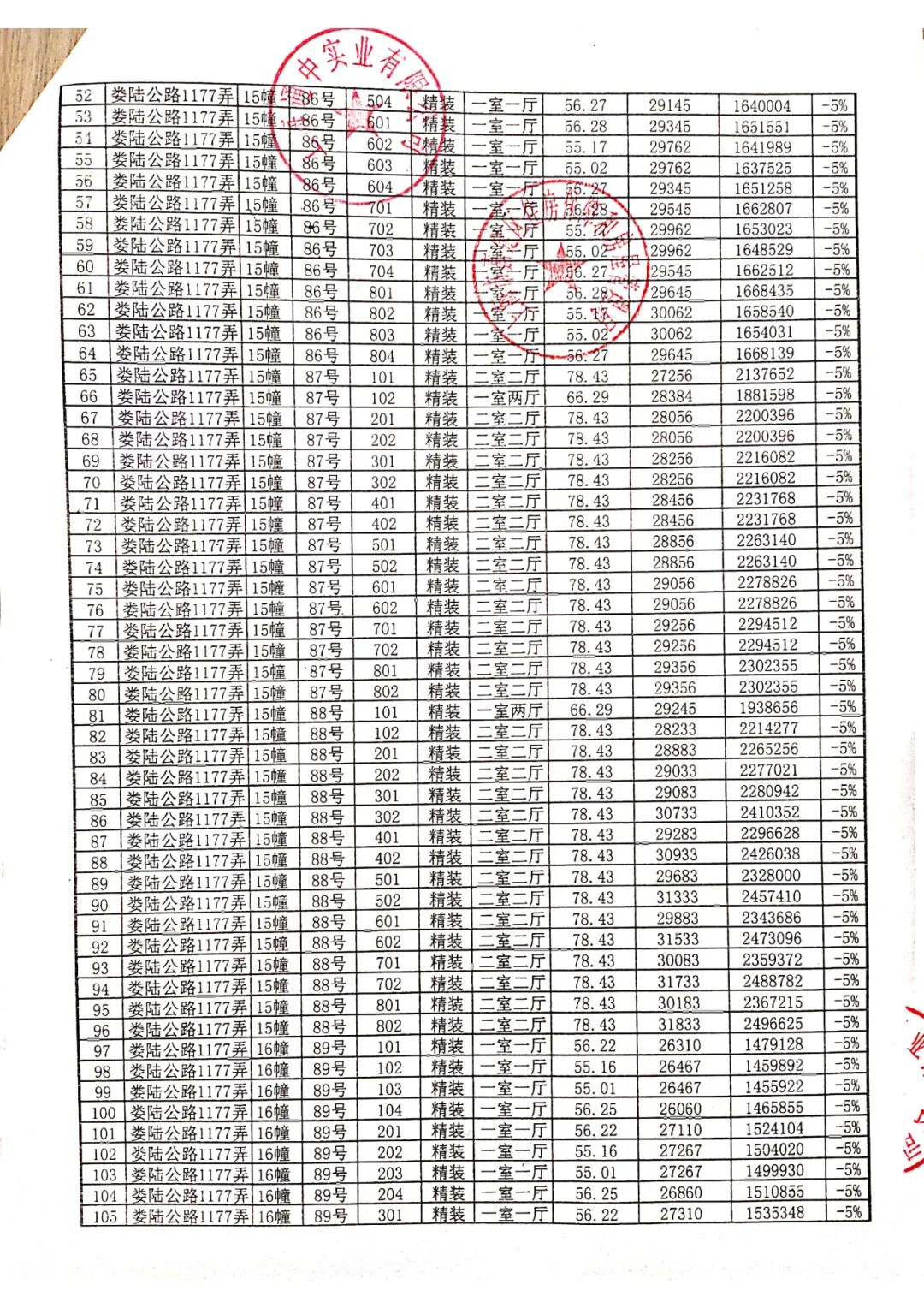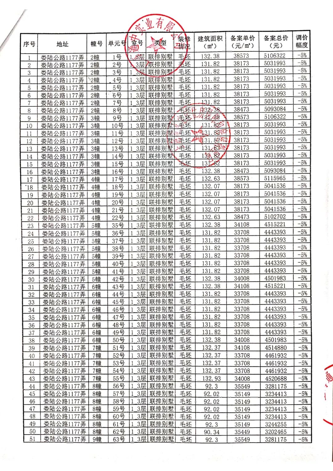 完整一房一价表如下: