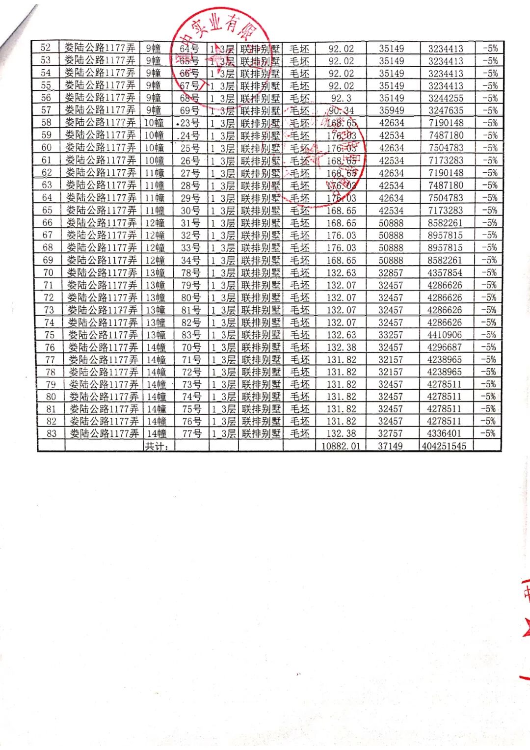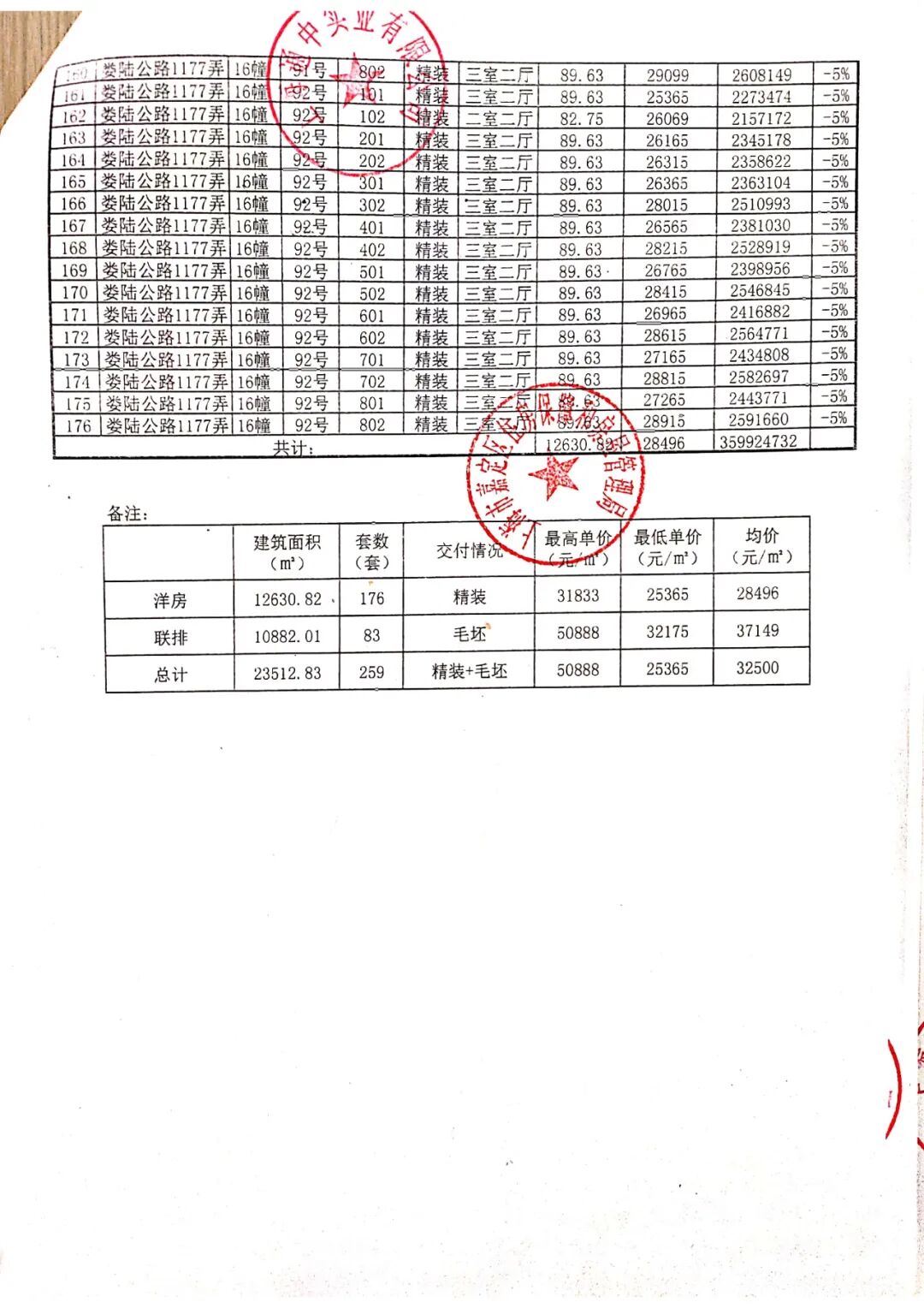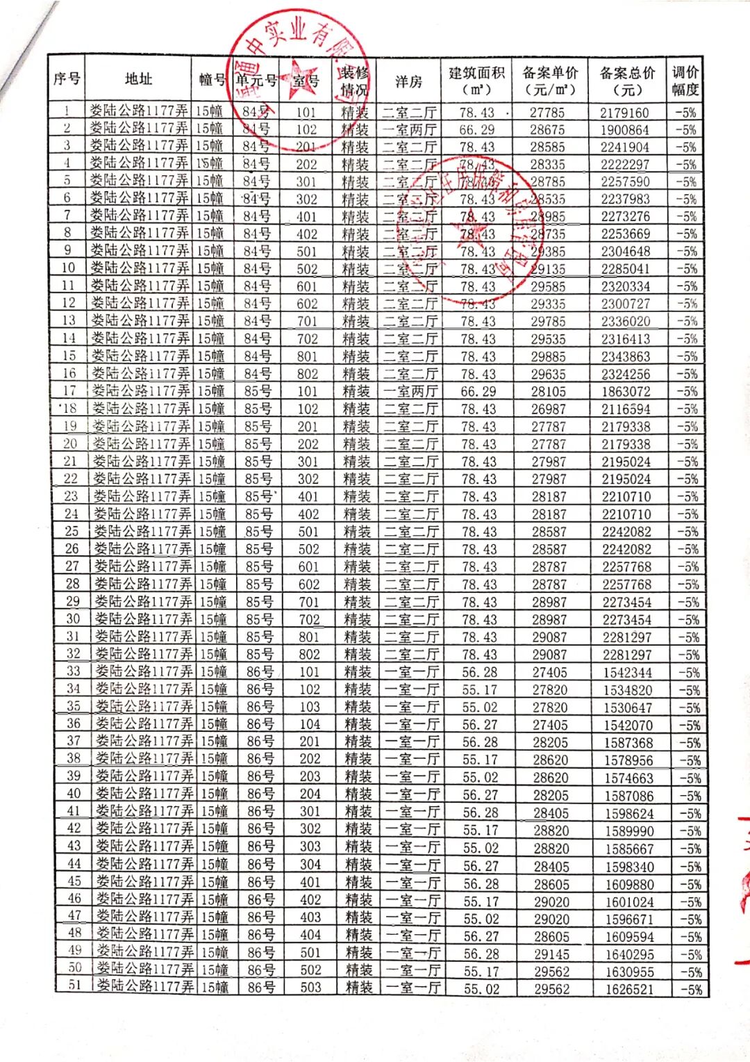 完整一房一价表如下: