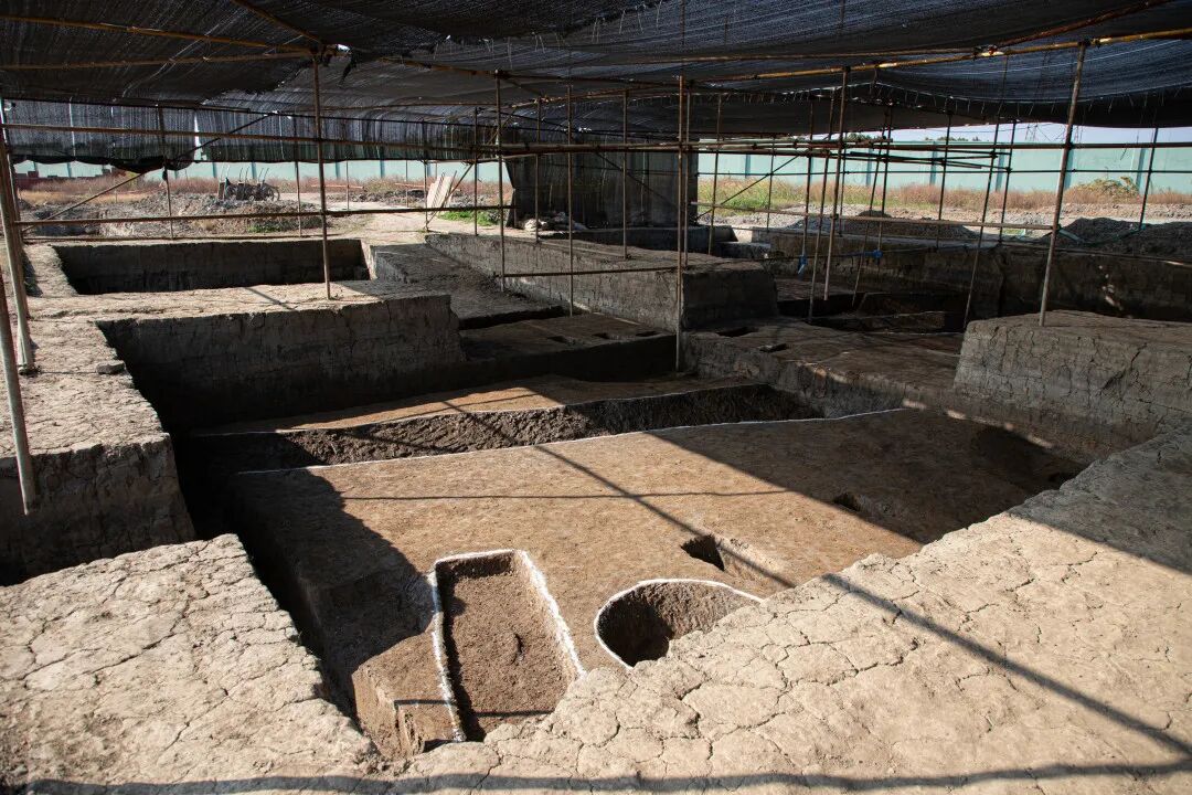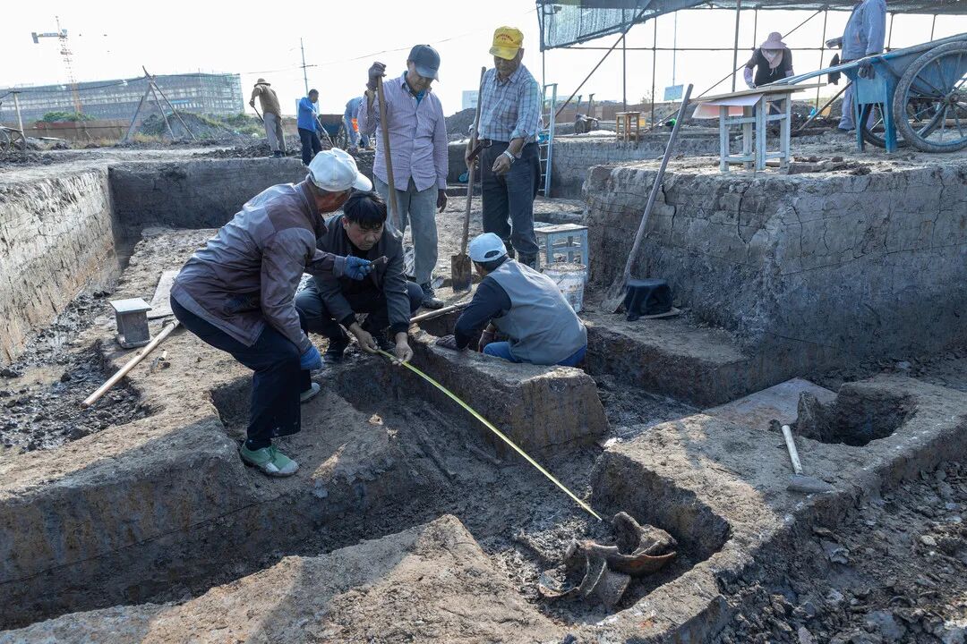 在何村遗址,考古人员共发掘墓葬37座、灰坑44个、沟8条、水井3口,其中马家浜文化时期的墓葬34座、灰坑36个、沟3条、水井2口。