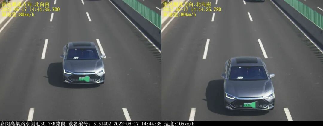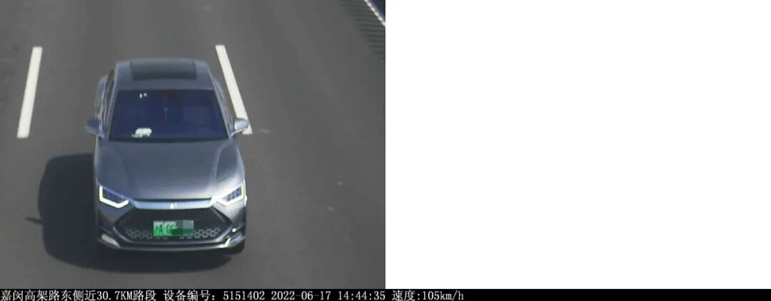 ▲2022年6月17日14时44分,号牌为沪AGC2***的小型轿车在嘉闵高架路东侧近30.7KM路段,实施了“驾驶校车、中型以上载客载货汽车、危险物品运输车辆以外的机动车在城市快速路上行驶超过规定时速20%以上未达到50%的”违法行为,该车车速105km/h,限速80km/h。