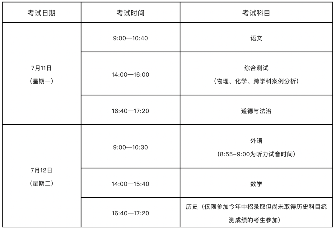考试科目和时间安排
