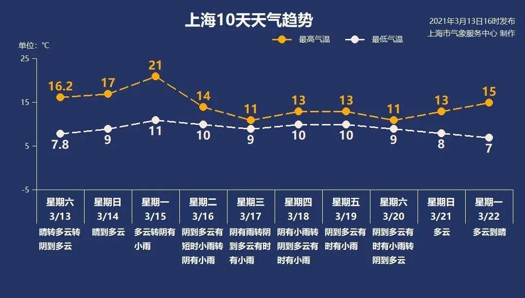 - 2021年的第73天 -嘉定明日天气:小雨 21℃/13℃ 憋了这么久上海这个周末终于放晴啦!   今日申城阳光持续在线 最高温预计升至17°…