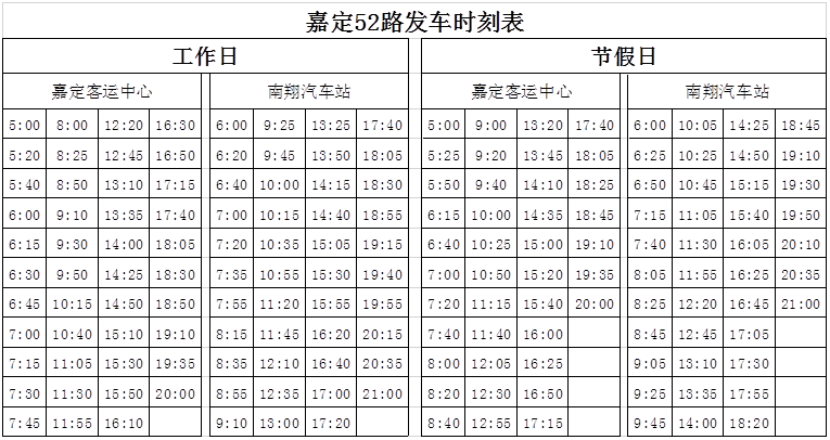 嘉定客运中心:由6:00-20:00调整为5:00-20:00