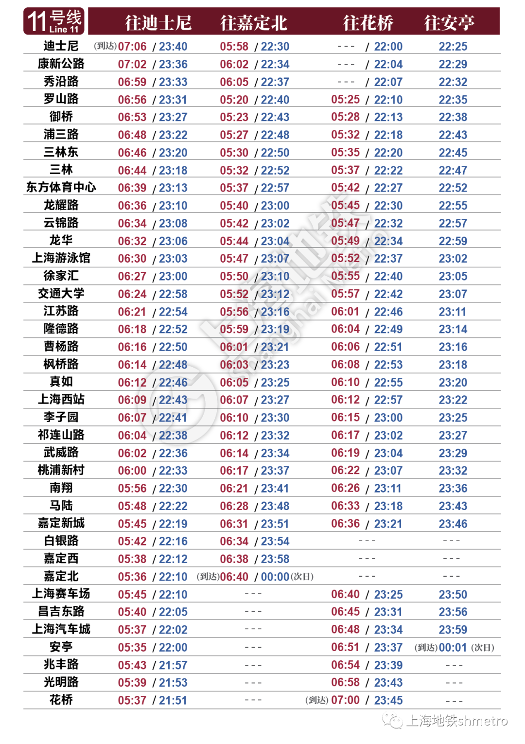 【最新】11号线首末班车最新时刻表,明日开始实行