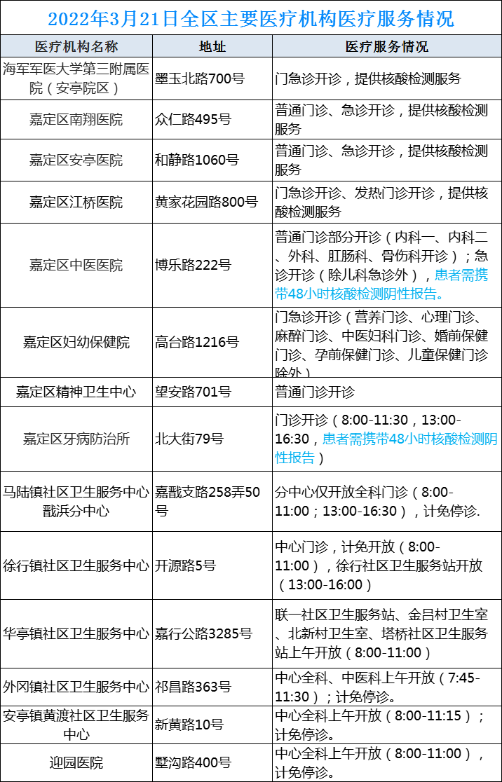 最新!嘉定区主要医疗机构开诊情况汇总