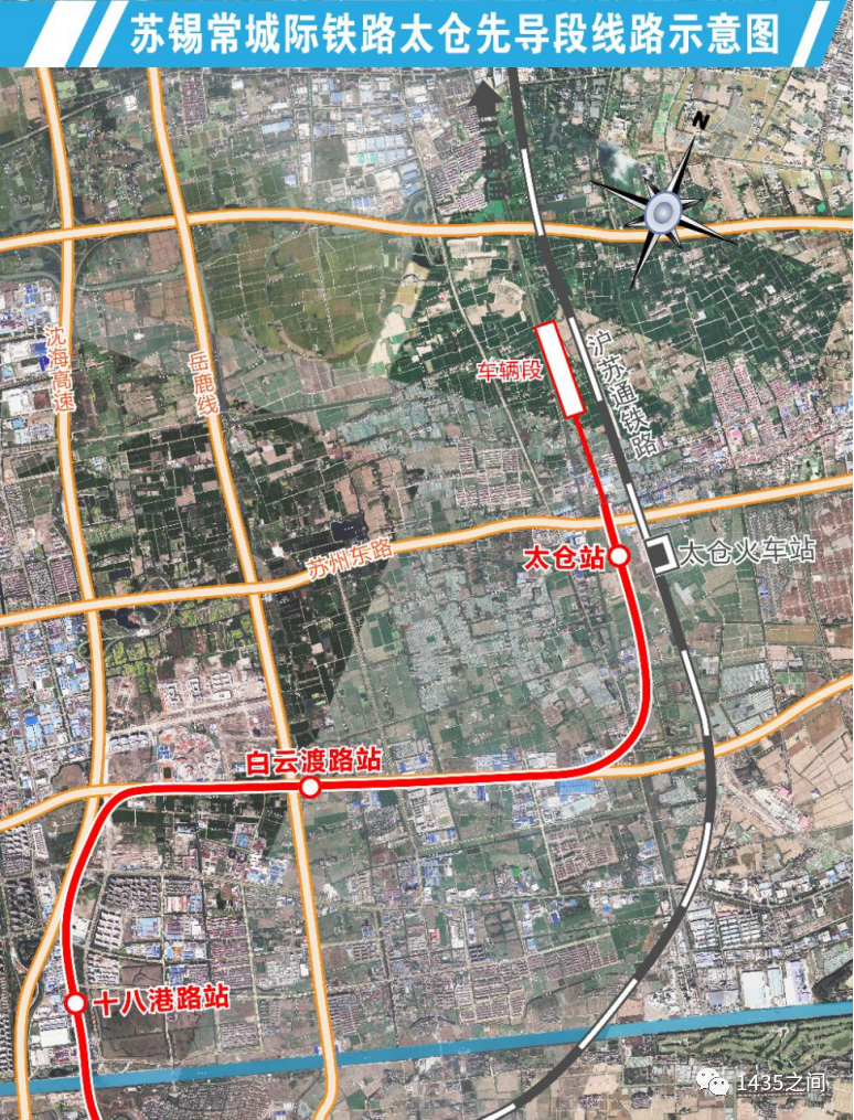 1、根据现有方案,苏锡常城际铁路太仓先导段工程线路主要沿规划娄江新城站前大道、江南路,以及十八港河西侧布设。     2、根据现有方案,本工程施工线路自太仓地下站引出,向南至江南路段、江南路向西至十八港路段,采用地下敷设工艺施工;下穿十八港路后出地面向南至省界段,采用高架敷设工艺施工,线路全长约10.3KM;本次工程全线共设车站3座(名称暂定),其中地下站2座(太仓站、白云渡路站),高架站1座(十八港路站)。   此外,本次工程还包含建设太仓车辆段一处(为配属车辆的检修作业使用),接轨于苏锡常城际太仓站北端;该场段选址于石头塘与沪通铁路,以及高速公路合围的夹心地块内,其中车辆段占地约42.63公顷,出入线约1.56公顷。     本次工程主要建设内容有:土建工程、轨道工程、桥梁工程、给排水工程、消防工程、人防工程,以及电力、通信等附属工程组成。   3、本工程计划于2022年10月底开工建设,建设工期60个月。   注:线路及车站设置(含出入口、风井设施)以施工图批后稿为准,最终以实际建设施工为准。新建线路和车站均为暂名,非批后地名(暂名有不唯一的情况)。市域铁路列车开行交路以运营阶段实时执行的运行图为准,与工程线路设计起讫点无关。本线本段范围内涉及的其他规划市域铁路(/城际铁路)和本段规划范围外的本线其他路段以该项目实施时设计和施工方案为准。