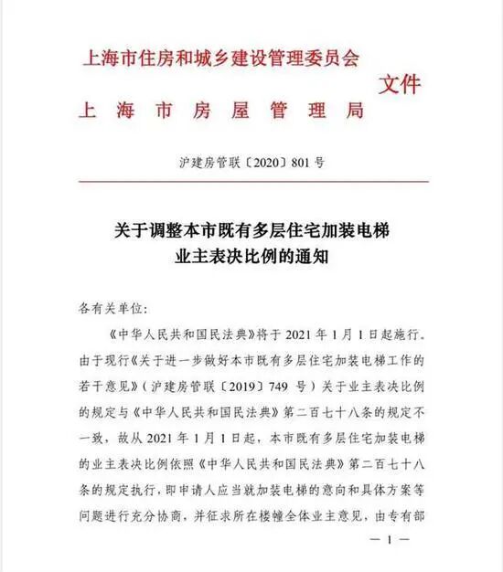 依照《民法典》,从今年起,上海老旧小区加装电梯的业主表决比例发生变化,和过去相比,表决比例更细化: