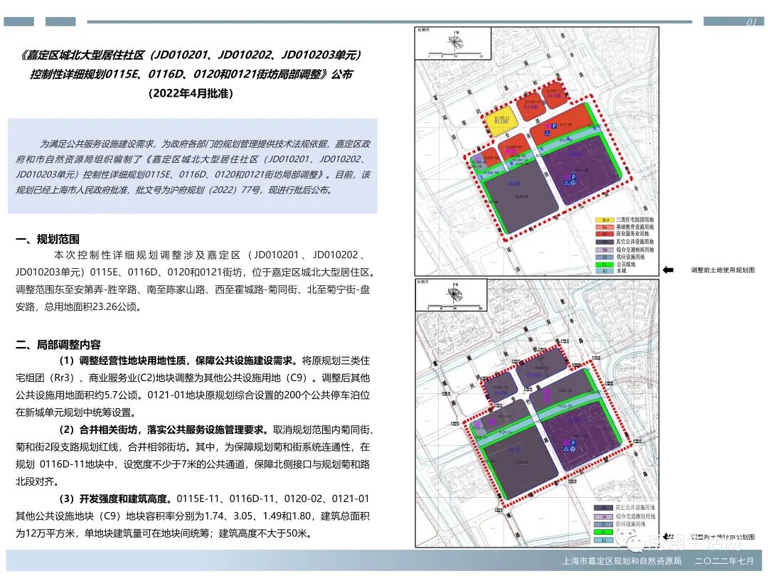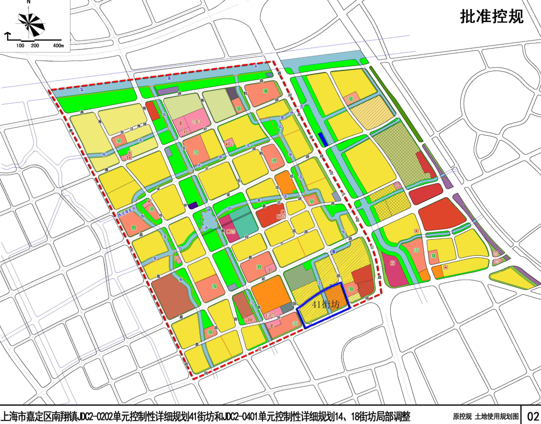 本次局部调整主要涉及41-04、41-05地块。     二、局部调整背景 《上海市嘉定区南翔镇JDC2-0201、JDC2-0202单元控制性详细规划(修编)》经“沪府规(2016]138号”批复。   根据地区发展需求,根将41-05地块收储后重新出让,故需调整相关控规内容,为下一步的开发建设提出合理化的建议。   三、局部调整内容 本次规划根据河道陆域控制范围落实防汛通道宽度,重新划定用地边界,并结合意向企业实际需求切分为两块用地。   41-04地块:用地性质仍为防护绿地(G2),用地面积调整为2152平方米。 41-06地块:用地性质调整为教育科研设计用地(C6),用地面积调整为11334平方米,容积率调整为3.0,建筑高度调整为50米,规划动态由在待建调整为规划。 41-07地块:用地性质调整为教育科研设计用地(C6)。用地面积调整为7842平方米,容积率调整为3.0,建筑高度调整为50米,规划动态由在待建调整为规划。   此外,为方便地块切分后出入口设置和交通组织。沿41-06地块北侧边界设置一条6米宽公共通道,供2个地块出入口使用。