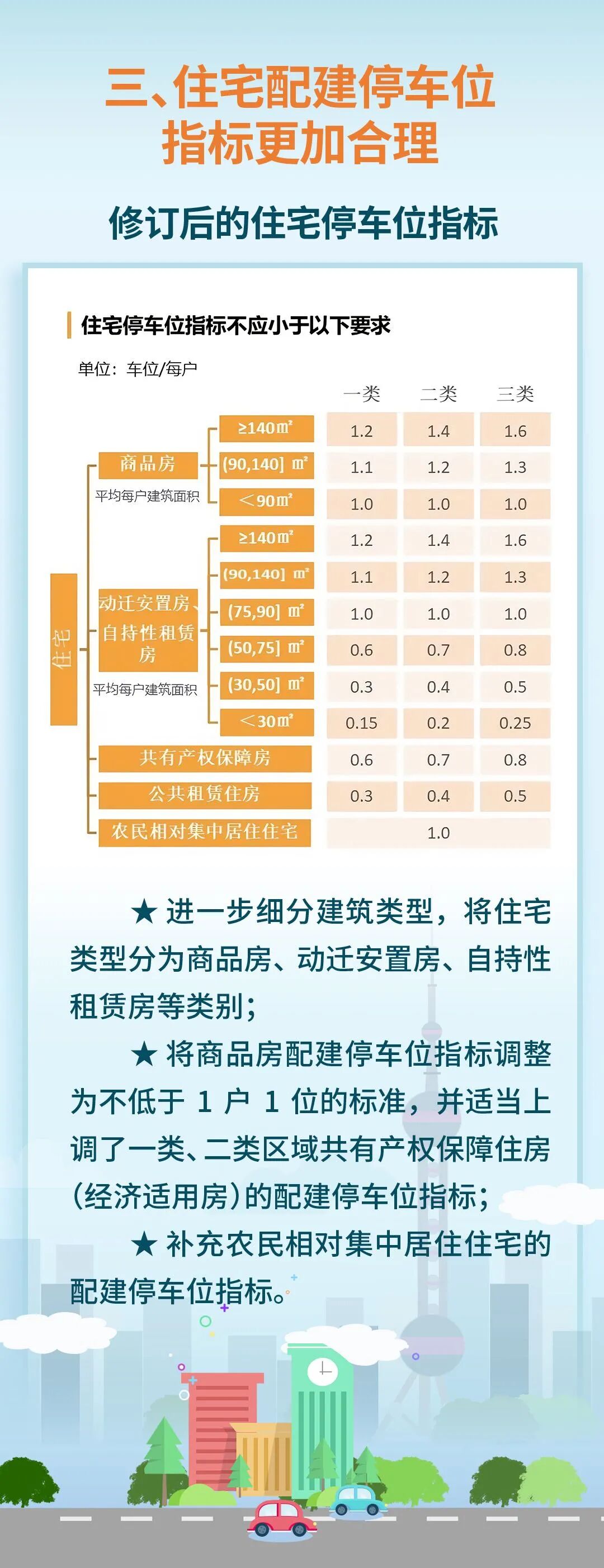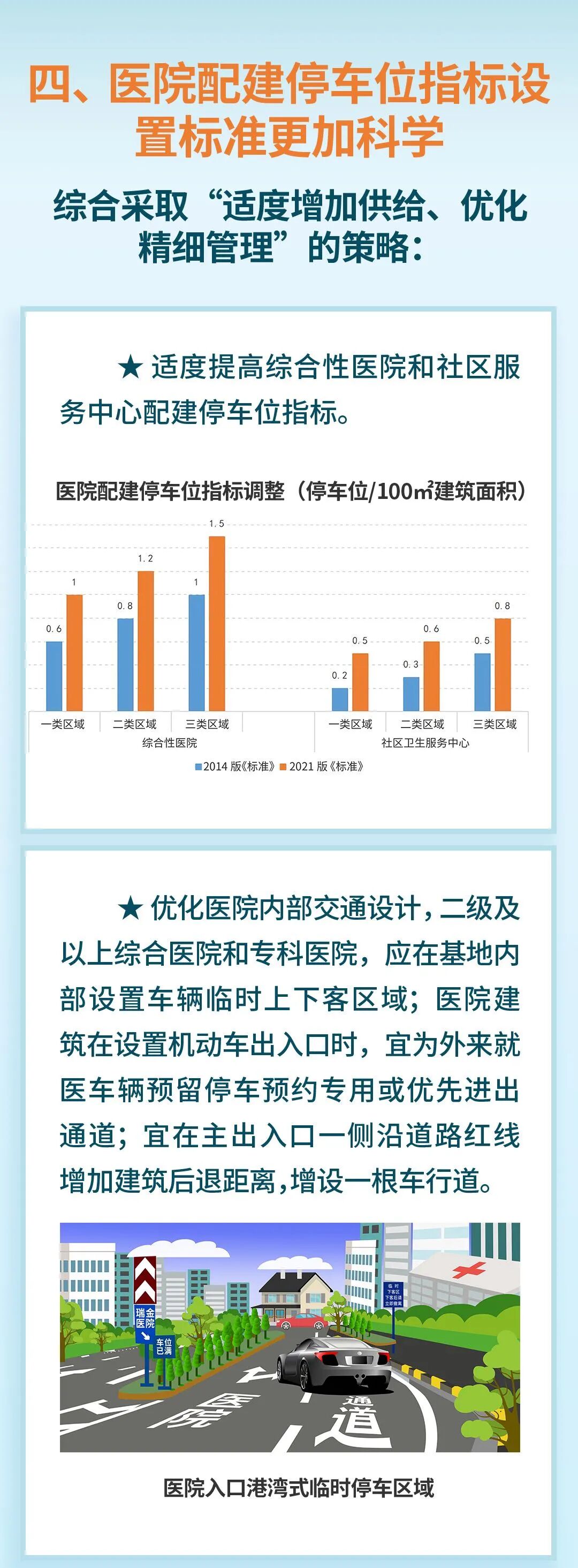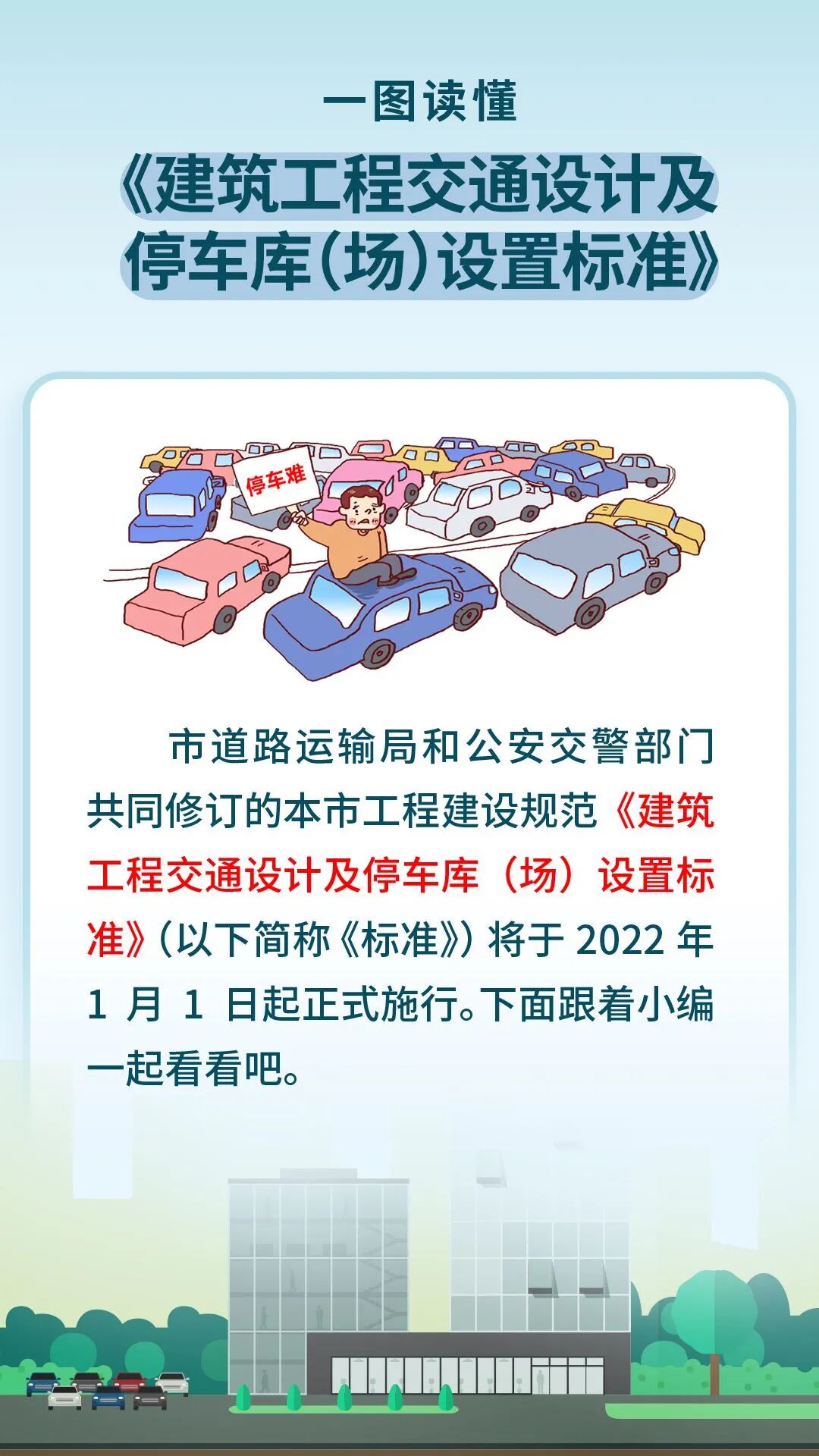 市道运局和公安交警部门共同修订的本市工程建设规范——《建筑工程交通设计及停车库(场)设置标准》将于2022年1月1日起正式施行,明确了配建停车位指标区域划分,进一步优化了标准、提高了住宅配建停车位指标、医院配建停车位指标等。详见图解↓
