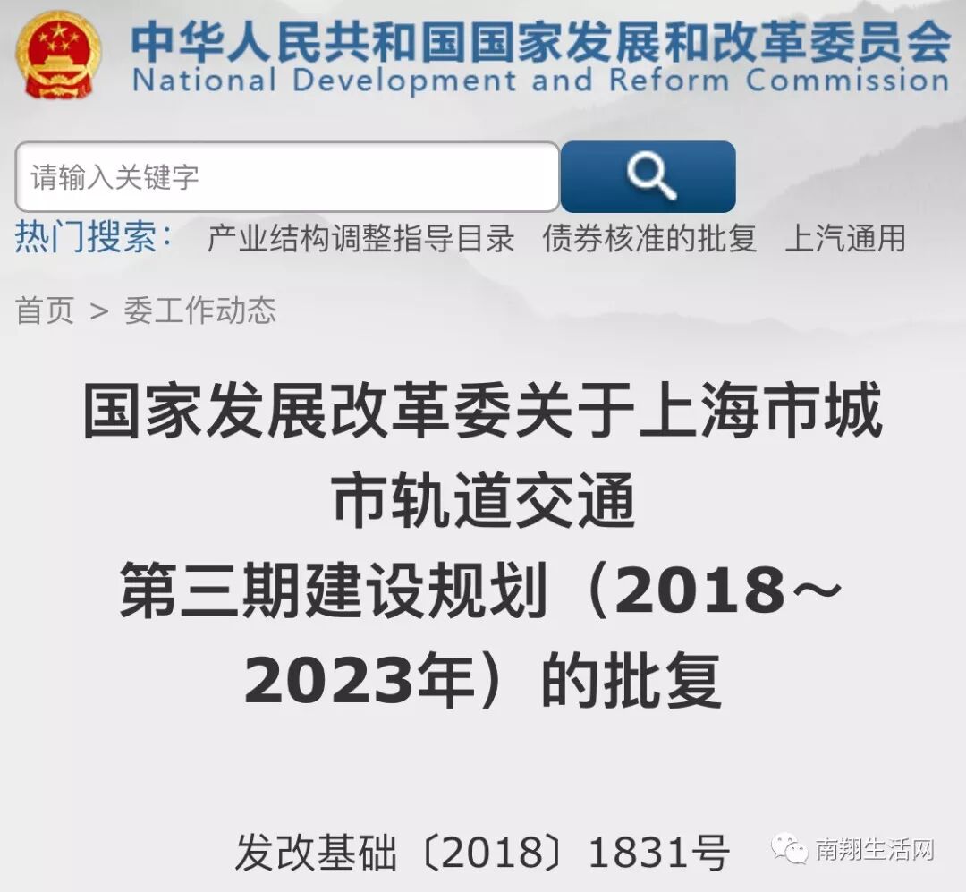 在这之前小编从国家发改委网站上获悉!!上海轨交通第三期建设规划(2018~2023年)