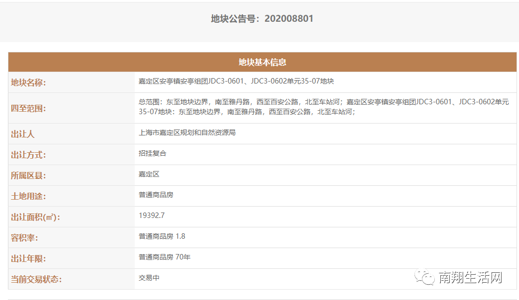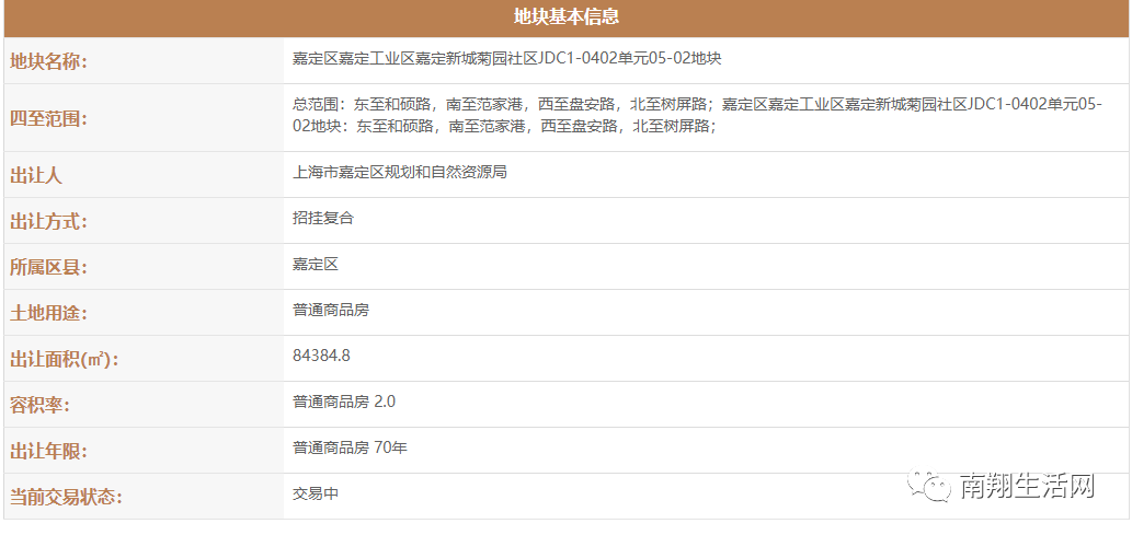 提要:今日(5月14日),南翔生活网从上海土地交易市场了解到。嘉定区挂牌了2宗住宅用地,分别是嘉定安亭地区与菊园地区,预计6月19日出让,具体什么情况快跟着小编来看一看!